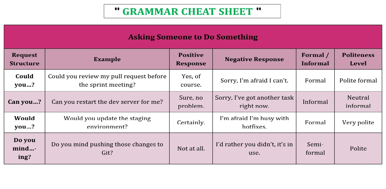 1. ✅ Asking Someone to Do Something – وقتی از همکار می‌خواهیم کاری انجام دهد.