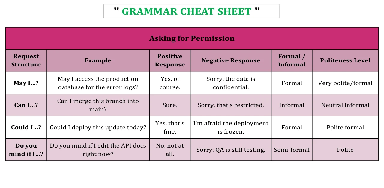 2. ✅ Asking for Permission – زمانی که برای انجام کاری باید اجازه بگیریم.