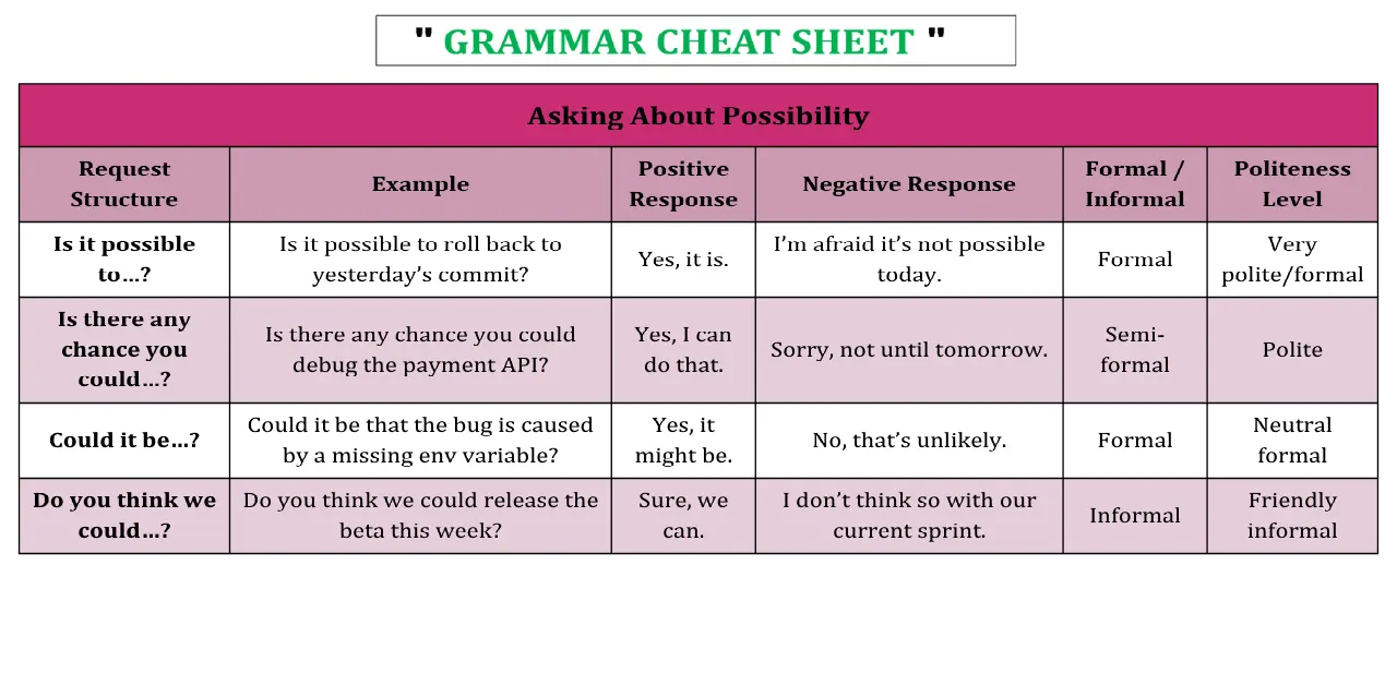 4. ✅ Asking About Possibility – وقتی می‌خواهیم درباره امکان انجام کاری سؤال کنیم.