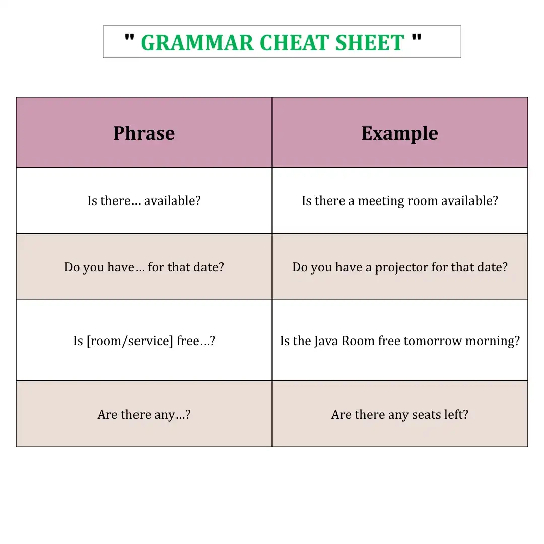 در دنیای کار، گاهی رزرو کردن یک اتاق جلسه یا تغییر زمان آن به اندازهی نوشتن یک قطعه کد اهمیت دارد! این راهنما شش مرحلهی اصلی فرایند رزرو را با عبارات ضروری و کاربردی ارائه میکند تا بتوانید در مکالمات کاری، سفرهای شغلی یا رویدادهای حرفهای به زبان انگلیسی روان و دقیق حرف بزنید.