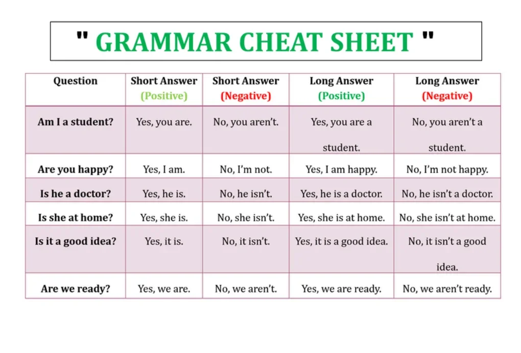 • You/We/They✅ Yes, we are. / ❌ No, they aren’t.
